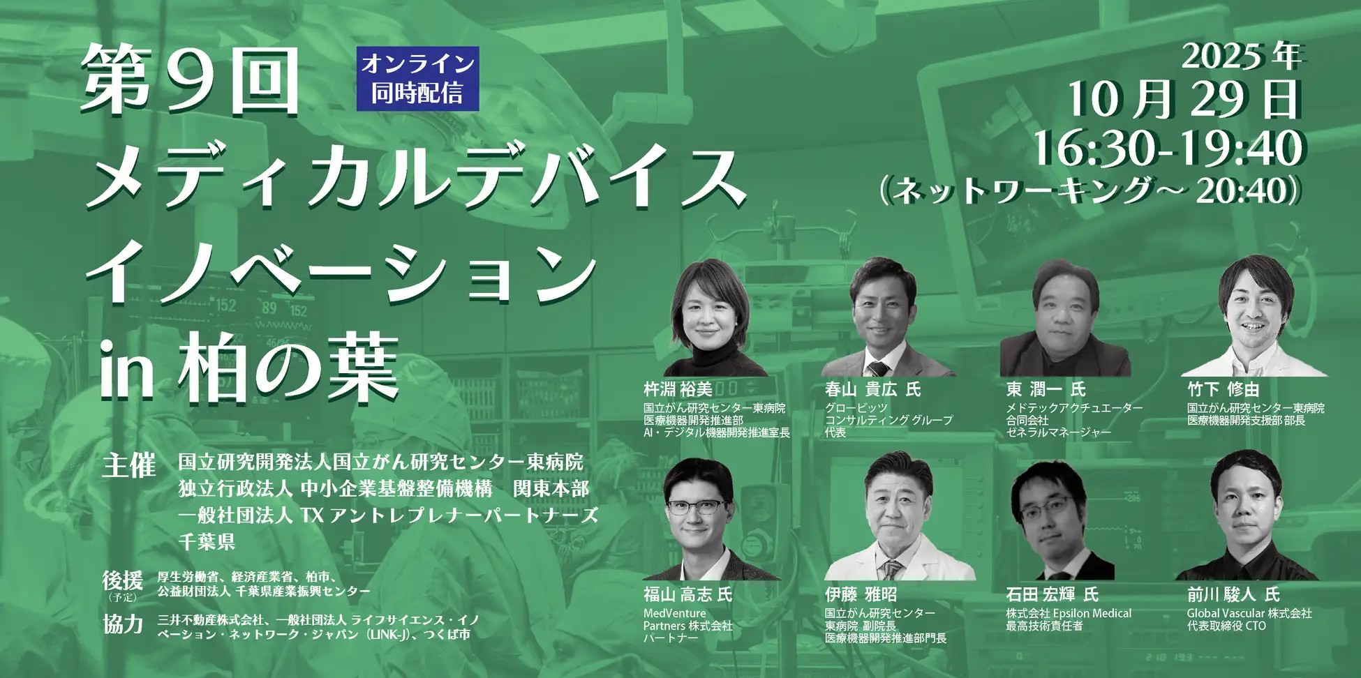 2025年10月29日(水)に『第9回メディカルデバイスイノベーション in 柏の葉』をハイブリッド開催いたします。